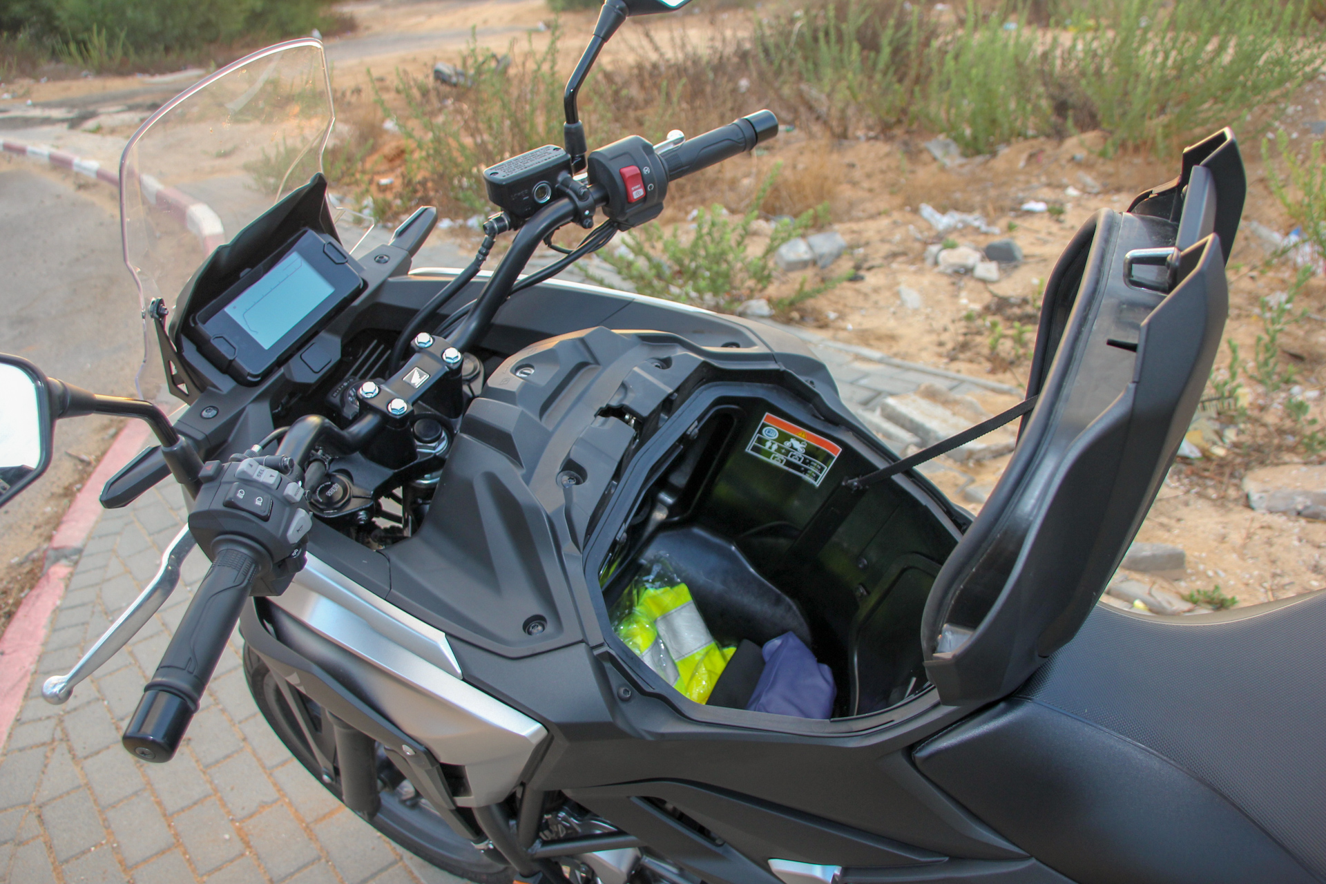 הונדה NC750X הוא חלק ממשפחת הכלים שהונדה מטשטשת באמצעותם את הגבולות בין אופנועים לקטנועים, והוא נועד להיות כלי תחבורה נוח ושימושי יותר מאשר כלי שרוצים להתפרק איתו. כלי כזה דורש הסתגלות, למשל לעובדה שמתחת למיכל הדלק המדומה מסתתר תא מטען שבו אפשר לאחסן קסדה. מה חבל שבשונה מהצהרת היצרנית – אי אפשר להטמין בתוכו קסדה מלאה במידה Small.