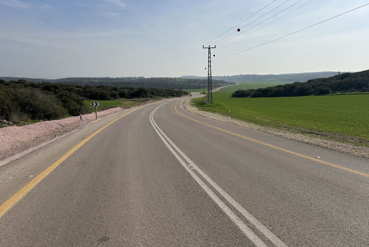 כביש מפותל בין שדות שפלת יהודה, עם קפיצה בזמן לתל לכיש
