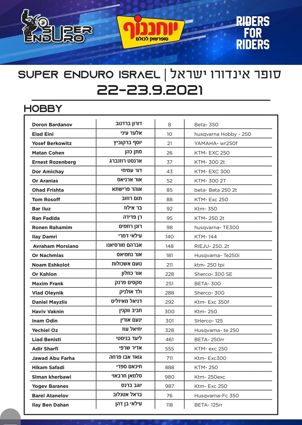 ברמה האישית אני מתרגש מאד ומצפה בקוצר רוח לצפות באקשן הדו-גלגלי ש’ריידרס’ מפיקים, ומבטיח לשתף אתכם בחוויות שלי. תגיעו, יהיה אש!