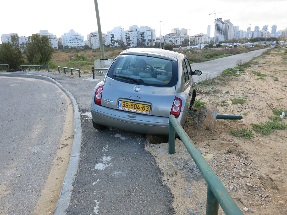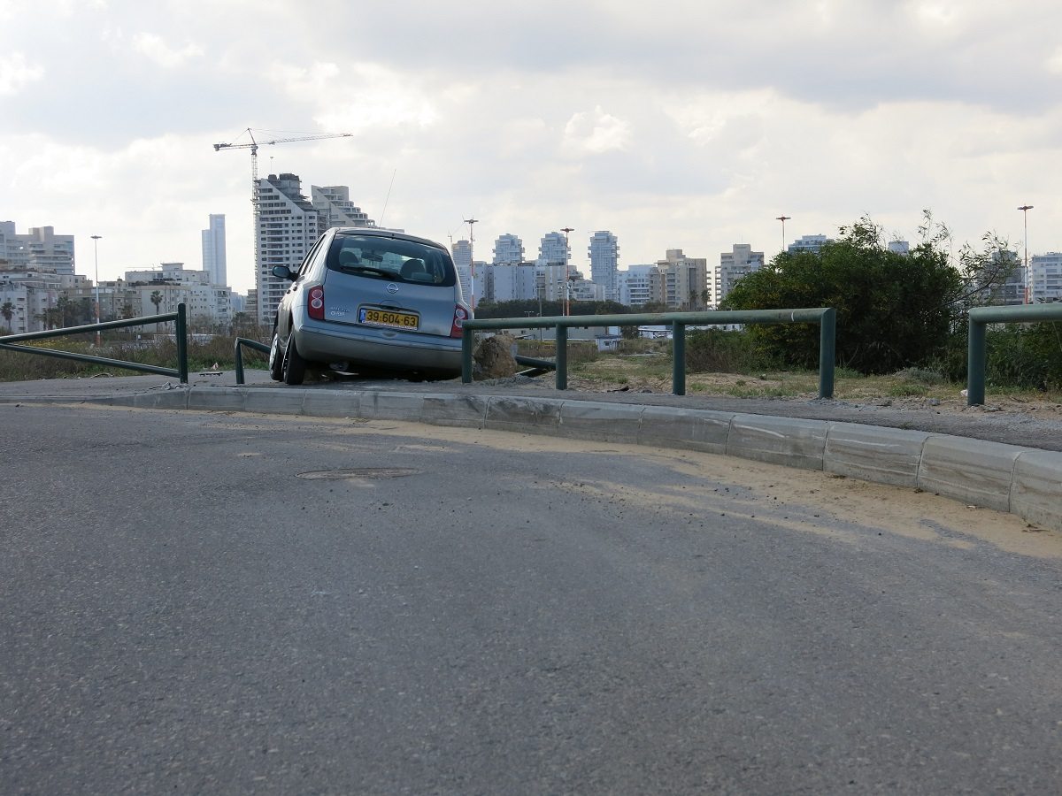 את התוצאות צריך היה לצפות כל מי שמעט שכל בקודקודו: נהגים שלא מכירים את הפניה מגיעים אליה במהירות גבוהה מידי, חלקם מצליח להתעשת ולבלום בעוצמה ואחרים נבהלים ומוצאים את עצמם על המדרכה ועל הגדרות שהקימה העיריה כדי לתחום את השטח שמעבר למדרכה.