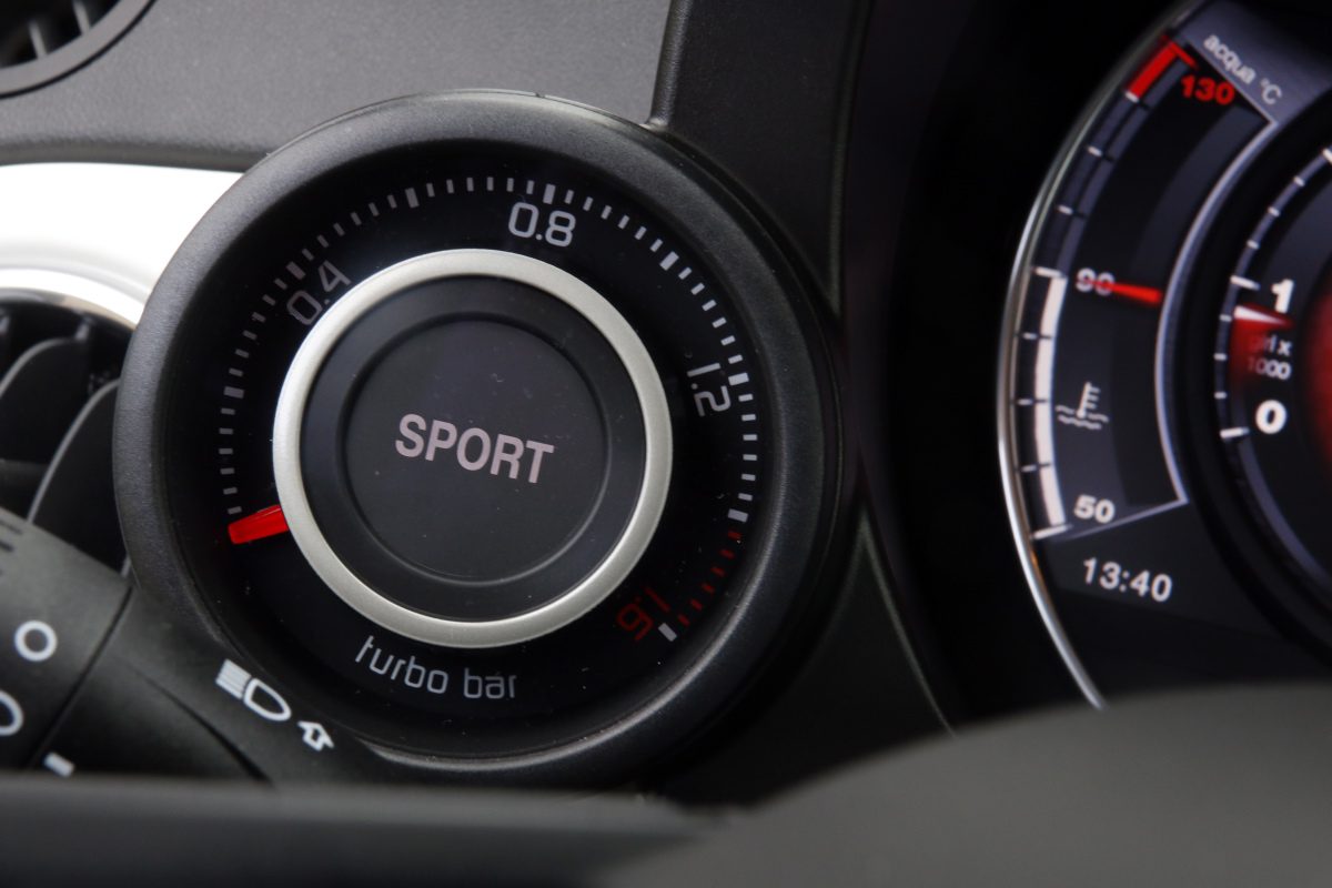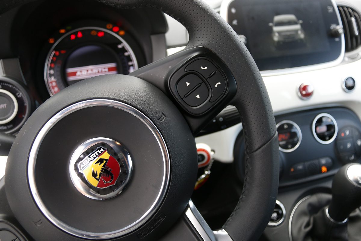 מימין להגה נמצא מתג ולצידו ציור של עקרב. מתג זה מעביר את המכונית למצב ספורט ולכן זה המתג המיותר ביותר בתבל. המכונית הזאת חייבת להימצא תמיד במצב ספורט שבו היא משכיחה את כל הביקורת כלפיה. לאחר הלחיצה לובש לוח המחוונים מראה ספורטיבי ממוקד והמנוע והמצערת עוברים למצב ניהול עצבני. ההגה מקבל את המשקל שהיה חסר לו, צליל המפלט הופך להיות נוכח וגרוני (במיוחד ברכב המבחן שצויד במערכת פליטה "מונזה" משפרת ואופציונלית הדורשת תוספת לא מבוטלת של עשרת אלפי שקלים). עד למהירות של 58 קמ"ש המפלט מושתק למען אוזניהם הרגישות של השכנים, אך זה מדרבן אותך למשוך את ההילוכים לסל"ד גבוה ולקבל את הגרגור הצרוד והנוכח.