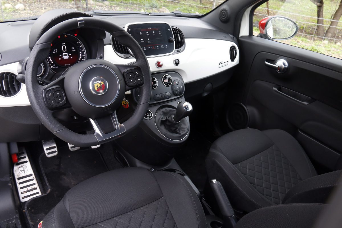 האווירה ספורטיבית בזכות גלגל ההגה הבשרני, דוושות האלומיניום, ידית ההילוכים המדליקה אשר נופלת בול ליד ודיפון העור על חלקו העליון של לוח המחוונים. אבל אי אפשר להתעלם מכמות הפאשלות בתא הנוסעים, כאלה שמזמן לא קיימות במכוניות מודרניות. לוח המחוונים הדיגיטלי זעיר, כך שחלק מן המידע לא קריא, למערכת המולטימדיה יש ממשק עתיק ודל, הפלסטיקה ודיפוני הדלתות משדרים תחושה זולה ואין אפילו פתיחה של דלתית פתח התדלוק (שננעל על ידי מפתח כמו בפיאט אונו) מתוך תא הנוסעים.