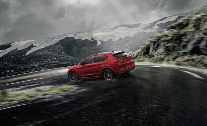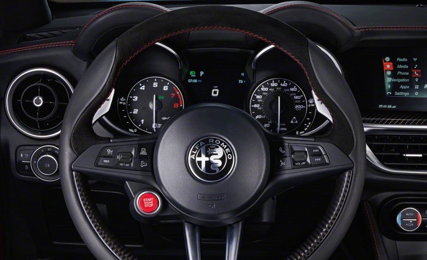 כמו ג'וליה גם סטלביו מוצע בשלב ראשון בגרסת 'קוואדריפוליו' החזקה והקרבית יותר, ועם הנעה כפולה כסטנדרט, וגם כאן מוצעת מערכת ניהול הכח בין הגלגלים שמסייעת לשיפור אחיזת הצמיגים המניעים בתוך פניות.