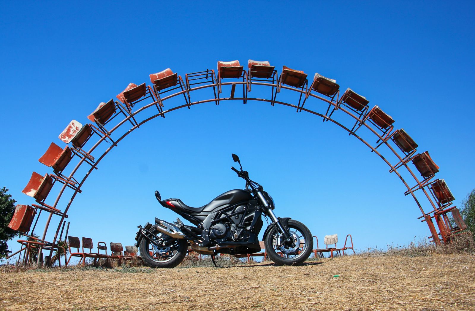 כאשר רוכבים על כבישים מפותלים מסתבר שתנוחת הרכיבה לא מאפשרת מספיק חופש לתפעול הכידון בעיקר מפני שהוא מעט מרוחק מידי. זה, אגב, מציק אפילו יותר בהתנהלות עירונית. למרות זאת, האופנוע משדר תחושה של כלי קל משקל שמגיב בזריזות לפקודות היגוי ושינויי כיוון.