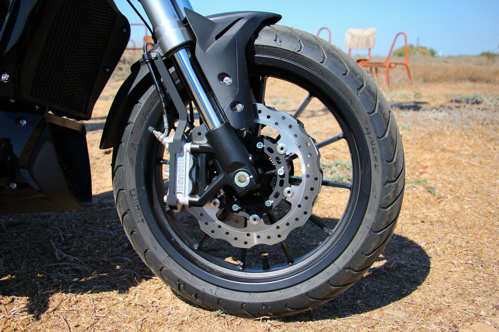 חשוב לציין לטובה את צמיגי ה'פירלי 'Angel ST שאיתם האופנוע מגיע, וזאת יחד עם סעפת פליטה, זרוע אחורית שנגמרת בלוחית הזיהוי, וקאליפרים שנראים נפלא ומתחברים היטב אל שפת המיתוג האחידה של אלמנטים רבים באופנוע הזה.