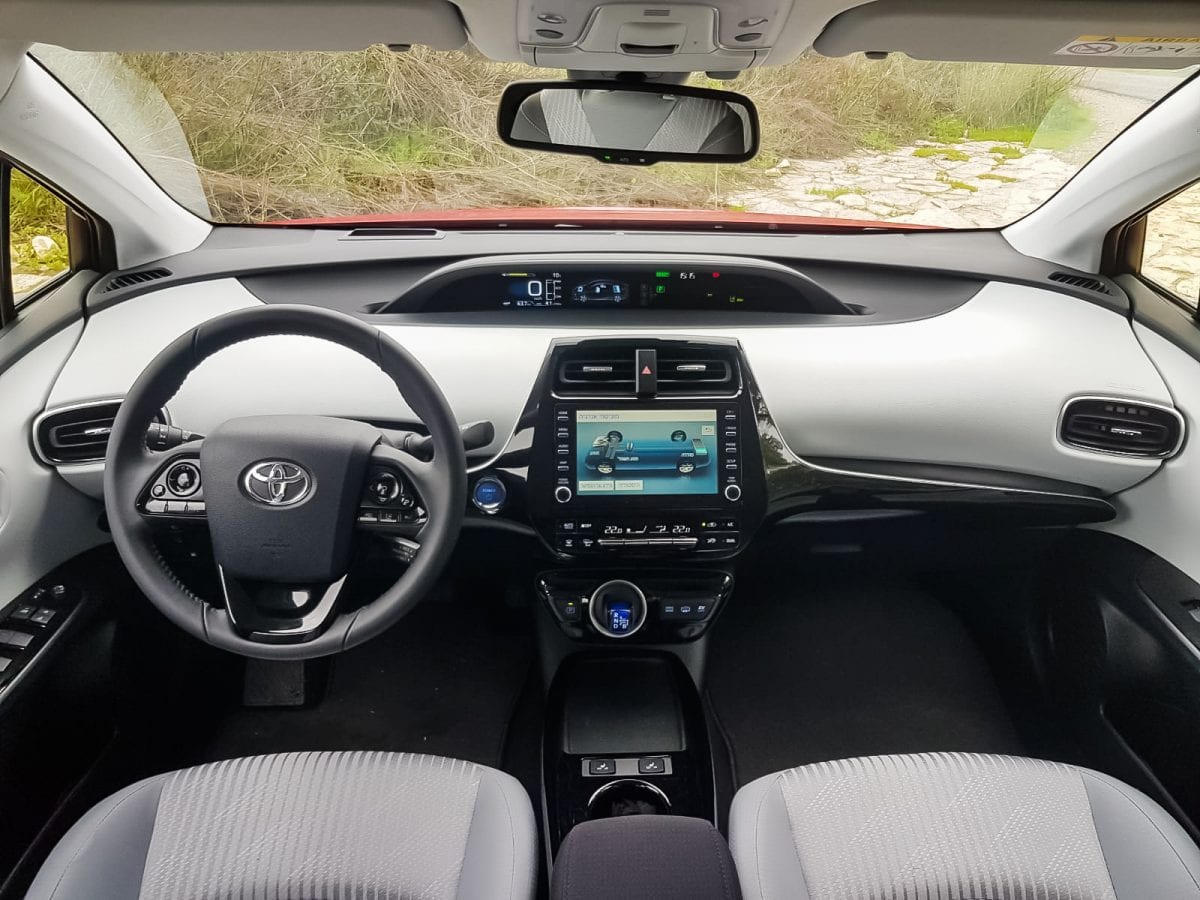 עיצובה המקורי, שלא לומר "מצועצע" של פריוס איפיין לאורך כל חייה גם את הקוקפיט ואת תא הנוסעים שלה. אלא שיש מצב שאחרי ארבע שנים אנחנו כבר עייפים ממנו, או שהוא סתם נראה קצת מיושן. בעיקר מציק לוח המחוונים הדיגיטלי במרכז, מפני שביחס למקובל כיום הוא נראה קטן מידי, והתצוגה עליו נראית צפופה. מערכת המולטימדיה מוצגת בעברית מלאה והיא נוחה לתפעול, אלא שהעיצוב של הממשק  נראה ארכאי, עד כדי כך שהוא הצית אצלי ניצוצות של וינדוס XP משנות התשעים.