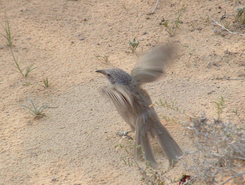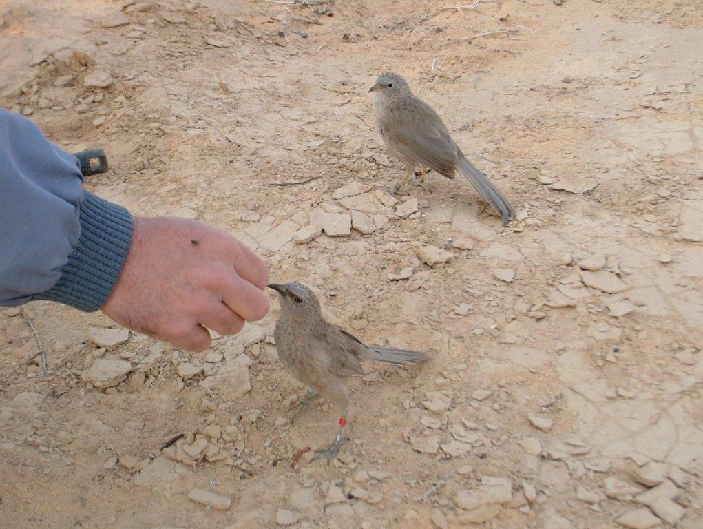 אני פונקתי בסיור VIP עם ד"ר רוני אוסטרייכר שלקח איתו מוט ארוך שבקצהו מותקנת מראה, וצריך להודות שזה נראה די משונה, על גבול האבסורד, בשעת הבוקר המוקדמת שבה צעדנו לנו בערוץ נחל שיזף אל תוך שרידי צינת הלילה המדברית. השמש עדין לא הספיקה לחמם את אדמת המדבר שעודה לחה מן הגשמים האחרונים, והליכת הבוקר בין עצי השיטה הייתה קלילה ונעימה. לפתע, כאילו משום מקום, שמעתי בסמוך אלינו ציוץ שנשמע כמו מנגינה ענוגה מפיו של שורק מוכשר. תוך רגע נשמעה שריקה דומה מעברו האחר של השביל, כאילו מישהו לועג לשני ההולכים בערוץ הנחל כשאחד מהם חמוש במקל שבקצהו נעוצה מראה. מהר מאד נשמעו עוד ועוד שריקות בוקעת מבין עצי השיטה הסבוכים, חלקן גדושות סלסולים, והנה מקור הרעש והצלילים: אני מביט כלפי מטה ורואה ציפור קטנה מהדסת לה בגאוותנות, מקפצת לצידי בחן ומתאימה את מהירות התנועה שלה לקצב הליכתי. בחדווה היא מנדנדת כה וכה את זנבה הארוך, שולחת אלי מבט מחוצף מידי פעם. רגע לאחר מכן מציצה ציפור נוספת, דומה, מבין ענפי השיטה, כשהיא משלימה דואט נהדר עם הציפור השחצנית שלצידי. או אז נחתו להן שלוש ציפורים נוספות וכולם יחד יצרו מקהלה עליזה שמנגנת בצוותא מנגינה אחת מסולסלת.