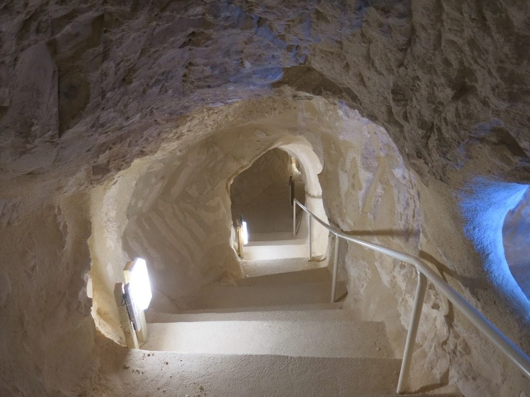 בתום הביקור בחלקו העליון של המבצר מתחילים לרדת דרך מפעל המים המרשים שבתוכו נראית בברור מלאכת החציבה של המחילות.