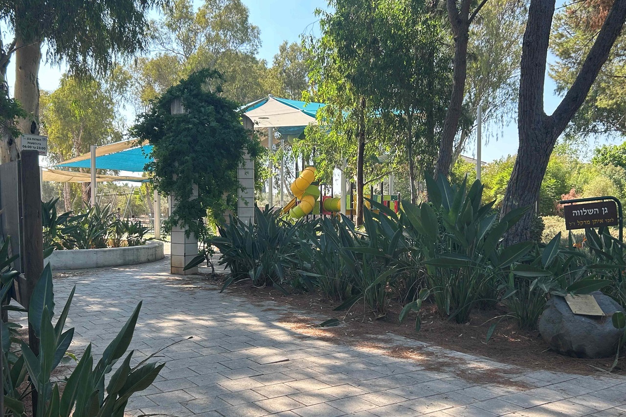 לאחר שכוברים מבעד לשער אבן פוסעים על שביל שמוקף בצמחיה ירוקה לצד מספר אקליפטוסים עבי גזע ומגיעים אל פינת משחקים שוקקת בילדים והוריהם.