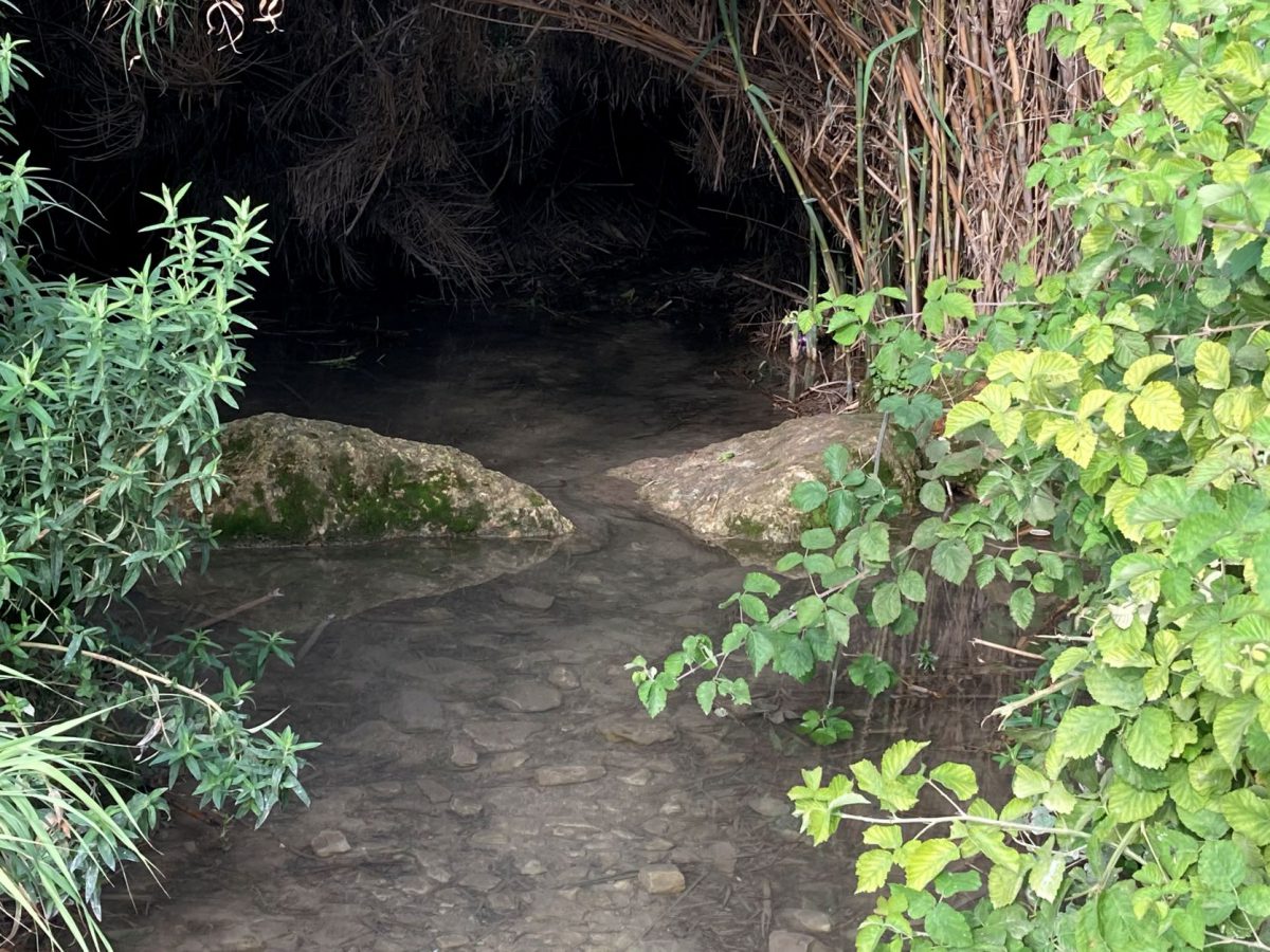 לאחר מנוחה לצד עין ריחניה נמשיך רגלית במורד הנחל, למרחק של כחצי קילומטר לאורך שביל עם סימון שבילים לבן-אדום-לבן ונגיע לקטע שבו יש זרימת מים איטית אך קבועה מתחת סבך קנים שיוצר סכך טבעי. התוצאה היא מעין "מנהרה" שכיף לסקור אותה עם ילדים.