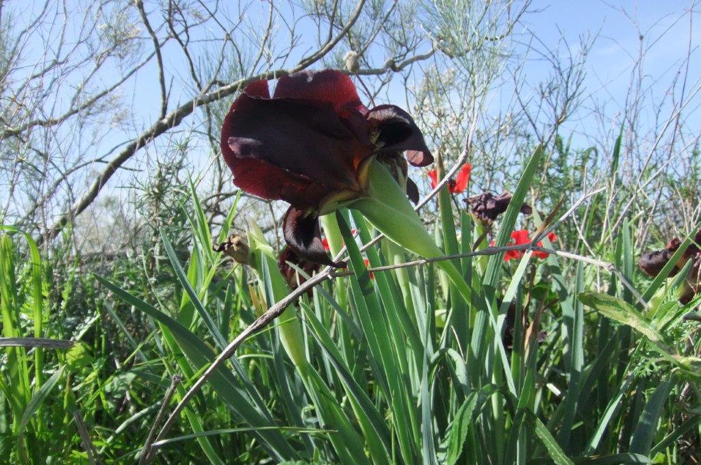 הגבעות צבועות בצבע העז והלבן של פרחי הרותם הקטנים אשר מהדרים את הנוף כולו, ענפי הרותם נעים ברוח ולעיתים נחזים להיות ההינומה האוורירית של כלה בחופתה. כלניות מחוצפות זועקות באדום מתחת לשיחי הרותם, וכל אלה הם רק תפאורה ורקע לכלה האמיתית של הפריחות: אירוס הארגמן, אשר מתגודד בקבוצות קטנות ומבודדות. פרחי אירוס שטרם נפתחו מתהדרים במניפת עלים ירוקים, ונדמה לי שהשנה קומתם שחה בגלל מיעוט המשקעים. זה לא מקהה את יופיו של האירוס, עם פרחים שבולטים בצבעיהם החריגים.
