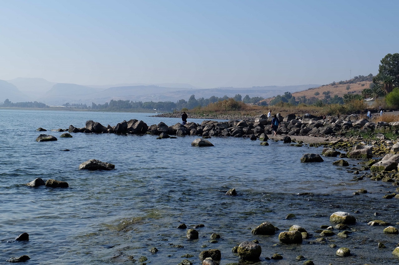 רגע לפני שנכנסים לכנסיה אפשר להעיף מבט על הכינרת. בזכות מתקני ההתפלה שפועלים בישראל הופסקה כמעט לחלוטין שאיבת המים מן הכינרת והחלה הזרמת מים מותפלים לתוכה. כיום נראה שכבר חלפו הימים שבהם האגם הרדוד הזה הלך והתכווץ. כעת הוא קרוב יותר מאי פעם בהיסטוריה הקרובה אל "הקו השחור" שמסמן את הצורך לפתוח את סכר הירדן ולשחרר מים לנהר.