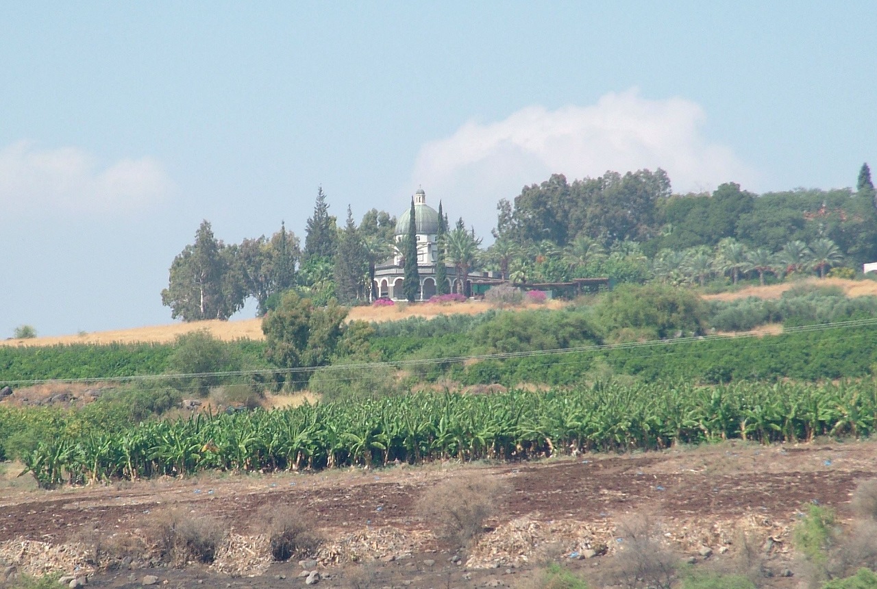 ממרומי הר נחום משקיפה כנסיית האושר אל הכנרת וגם אל הנוף עוצר הנשימה של הרי הגולן, הגליל העליון והגליל התחתון