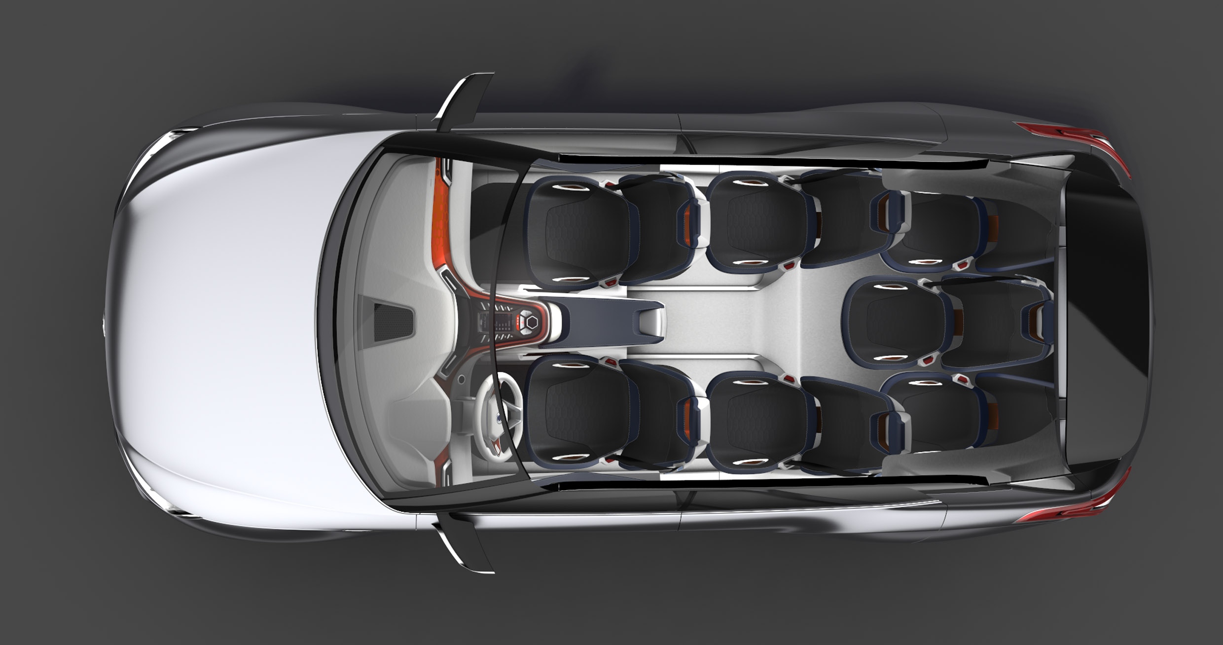 מושב אמצעי שמחליק בין שורת המושבים השניה לשלישית הוא החידוש המרענן של מכונית התצוגה הקוריאנית-הודית