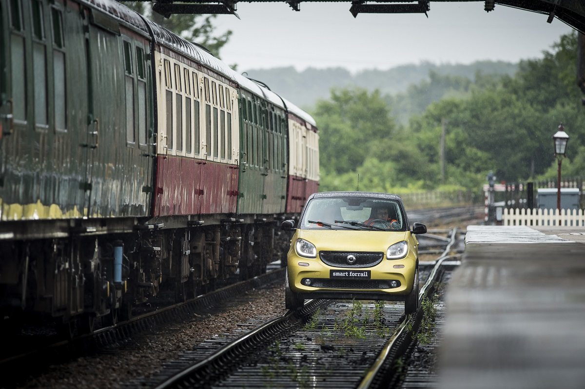 Smart ForRail at the Bluebell Railway, Sussex, 22 June 2015 Mercedes-Benz Smart Car. Train Photo: James Lipman / jameslipman.com
