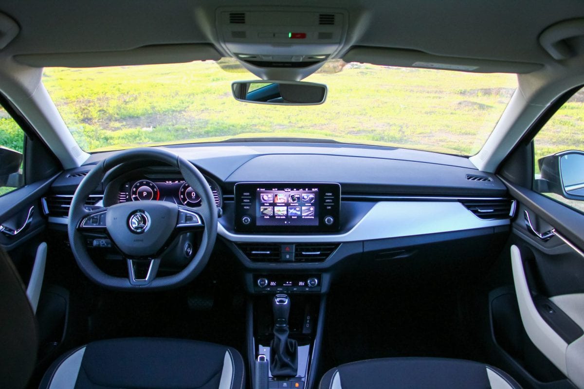 עיצוב הפנים של סקאלה, ובכלל זה לוח המכשירים וסביבת הנהג, הועתקו כמעט בשלמותם לקאמיק, ועל אף שלא תמצאו כאן מקוריות עיצובית יוצאת דופן בהחלט אפשר לדווח על עיצוב נקי והנדסת אנוש טובה כמקובל בדגמי קבוצת פולקסווגן. מיקום נמוך מידי, ומרגיז, של פתחי המיזוג המרכזיים (פועל יוצא בלתי נמנע של מסכי מערכת מולטימדיה הכרחיים) מוריד כמה נקודות מסך הכל חיובי למדי.